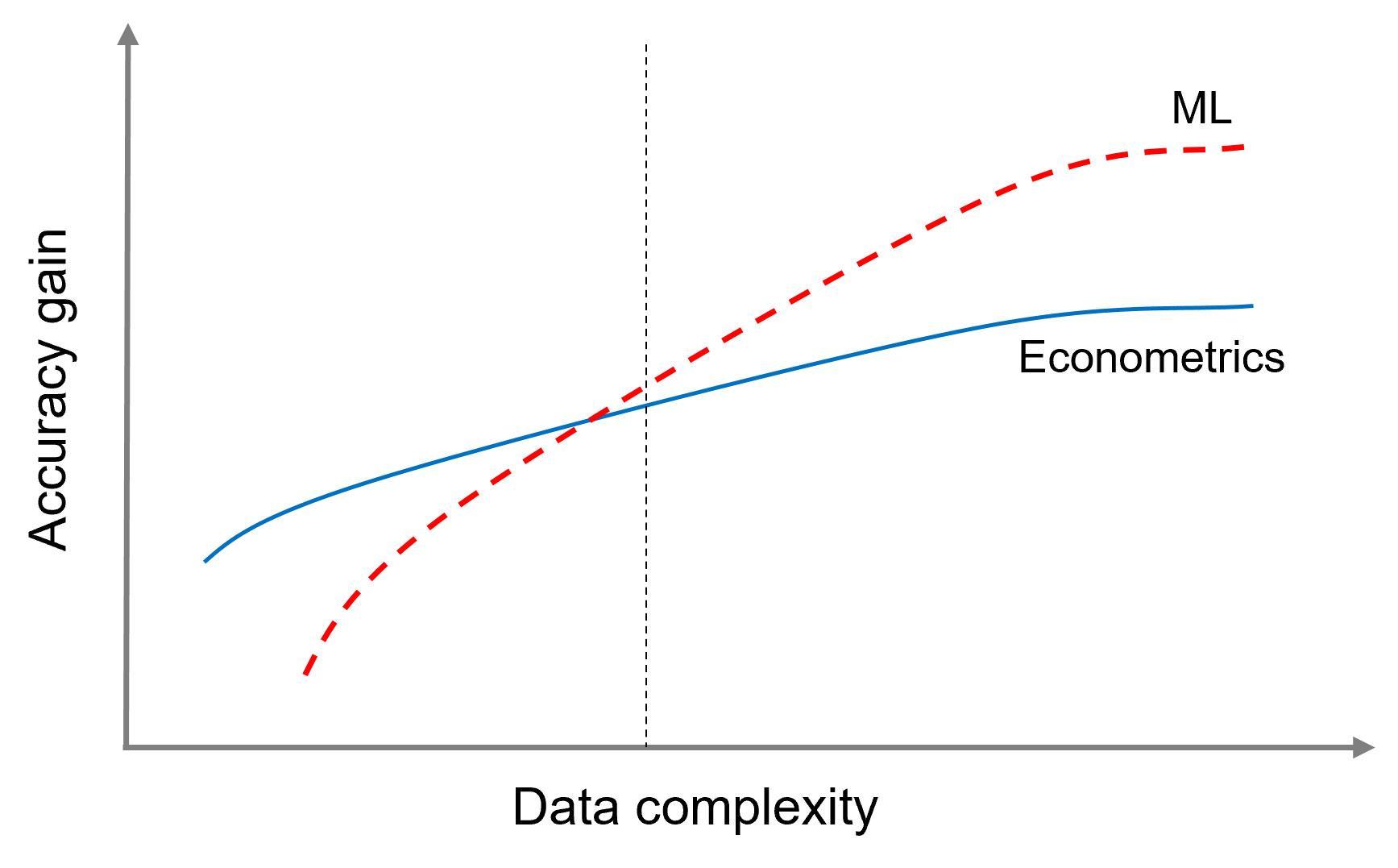 Figure 1: Relative merits of machine learning and traditional econometric methods