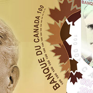 Regardez les chiffres correspondant à la valeur du billet ainsi que le mot « Canada » légèrement en relief.
