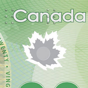 Regardez les chiffres correspondant à la valeur du billet ainsi que le mot « Canada » légèrement en relief.