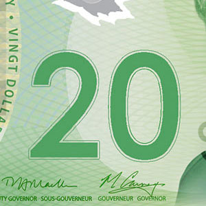 Touchez le billet pour sentir l’encre en relief sur les mots « Banque du Canada » et « Bank of Canada ».