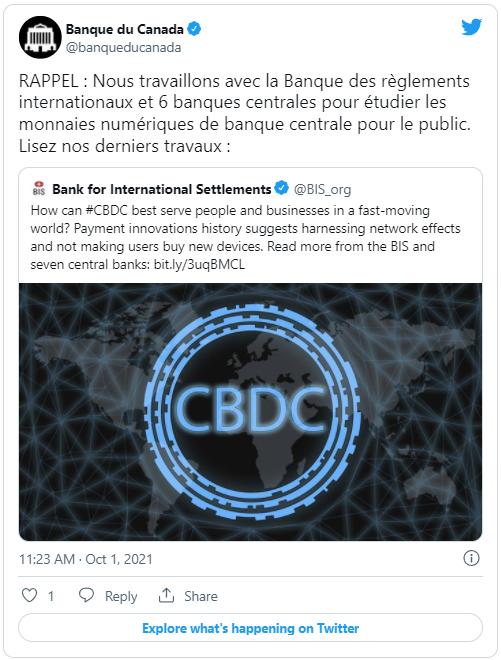 RAPPEL : Nous travaillons avec la Banque des règlements internationaux et 6 banques centrales pour étudier les monnaies numériques de banque centrale pour le public. Lisez nos derniers travaux : Octobre 1, 2021