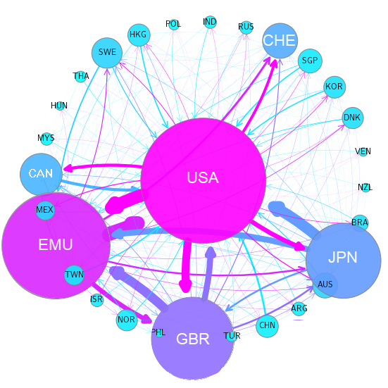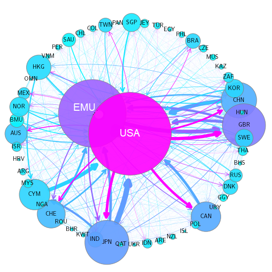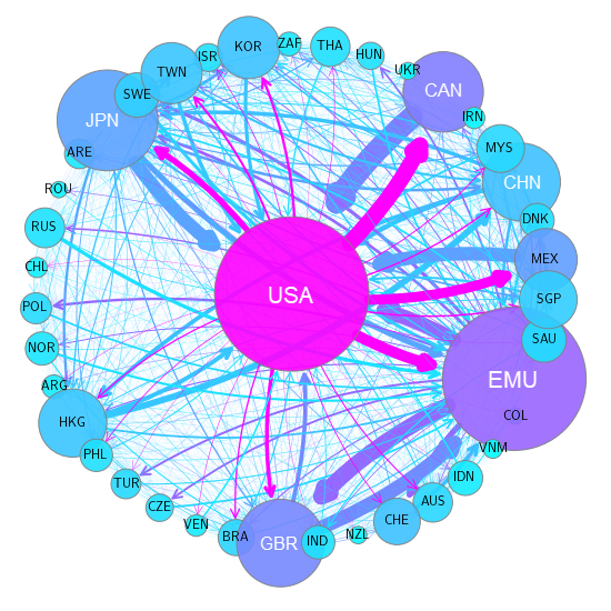 Voilà qui m’amène à la troisième mégatendance. Si les États-Unis ne règnent plus en maître sur le commerce, ils continuent néanmoins de dominer les flux financiers mondiaux (graphique 5).