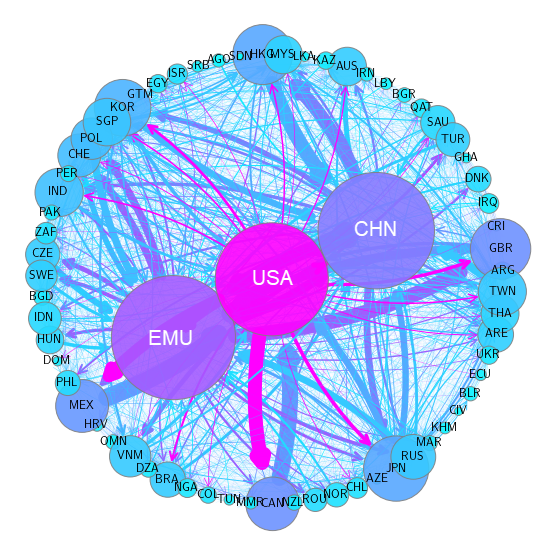 Le changement est spectaculaire. En 2000, les États-Unis avaient une position dominante. Aujourd’hui, le réseau commercial mondial compte trois pôles principaux : la Chine, les États-Unis et la zone euro. Il est également devenu beaucoup plus complexe qu’il y a 20 ans.