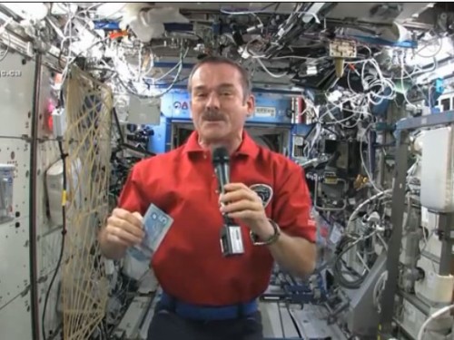 À bord de la Station spatiale internationale, Chris Hadfield, astronaute de l’Agence spatiale canadienne et commandant de l’Expédition 35, a dévoilé un nouveau billet de banque canadien en direct de l’espace.
