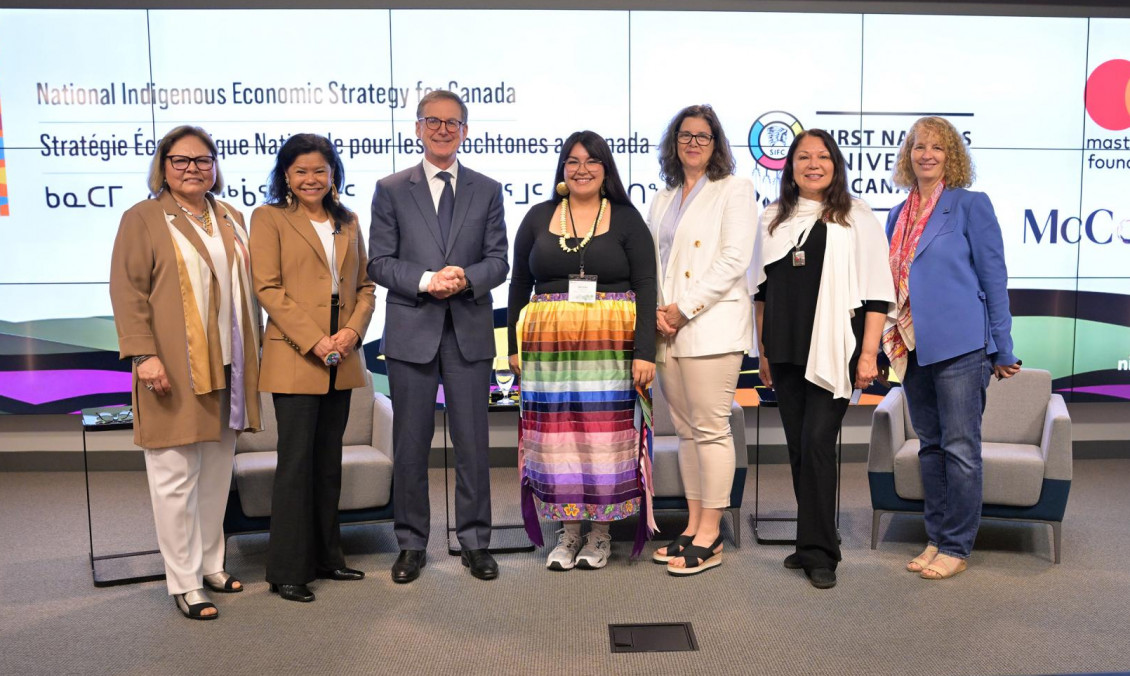 Le gouverneur Tiff Macklem en compagnie de participantes à l’activité organisée en juin dans le cadre de la Stratégie économique nationale pour les Autochtones au Canada.