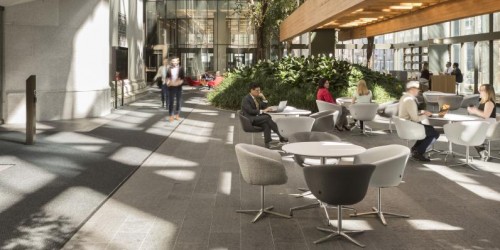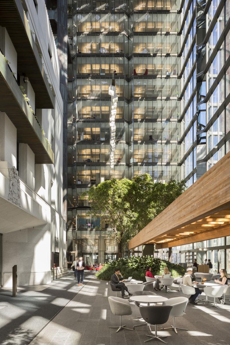 Les tours et l’atrium font aussi l’objet de nombreux travaux d’amélioration structurelle et de maintenance des équipements qui, pour la plupart, ne sont pas apparents. Par exemple, pour assurer le bon fonctionnement des installations de chauffage et de climatisation modernisées, nous préservons la beauté extérieure des murs-rideaux en verre réfléchissants dessinés par Erickson en y ajoutant une paroi vitrée intérieure.